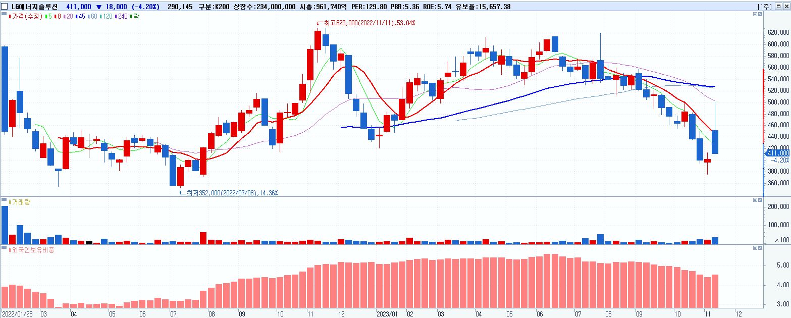 LG에너지솔루션 411,000원 ▲ 2.24% (KOSPI, 373220)