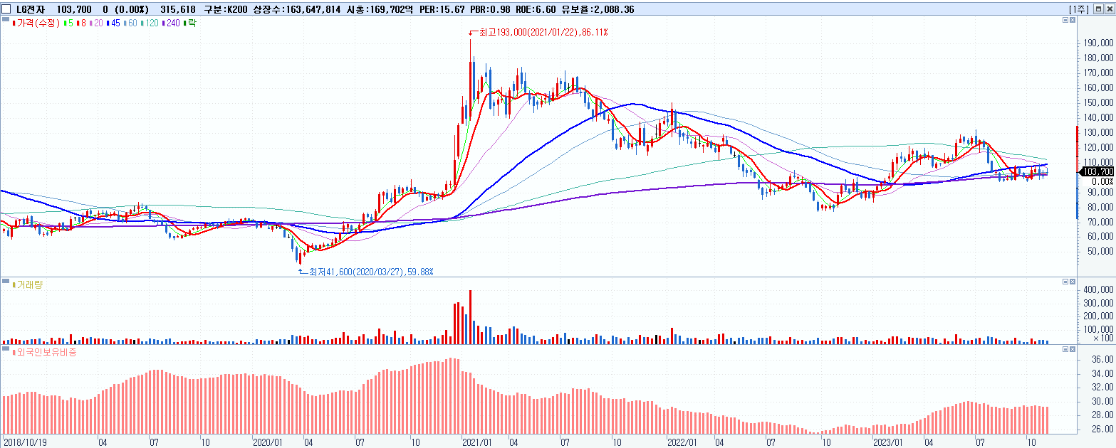 - LG전자 (103,700원 ▲ 2.27% , 시총: 169,703억, 거래량: 2,576,673, 거래대금:2,676억, KOSPI)