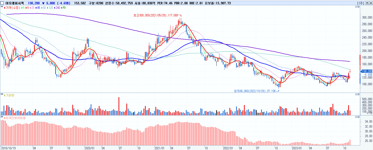 아모레퍼시픽 138,200원 ▲ 3.68% (KOSPI, 090430)