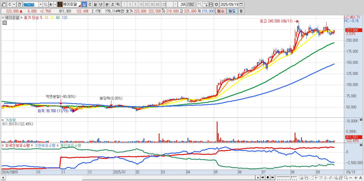 - 에이피알 (223,500원 ▲ 3% , 시총: 83,658억, 외국인 순매수 거래금:395억)