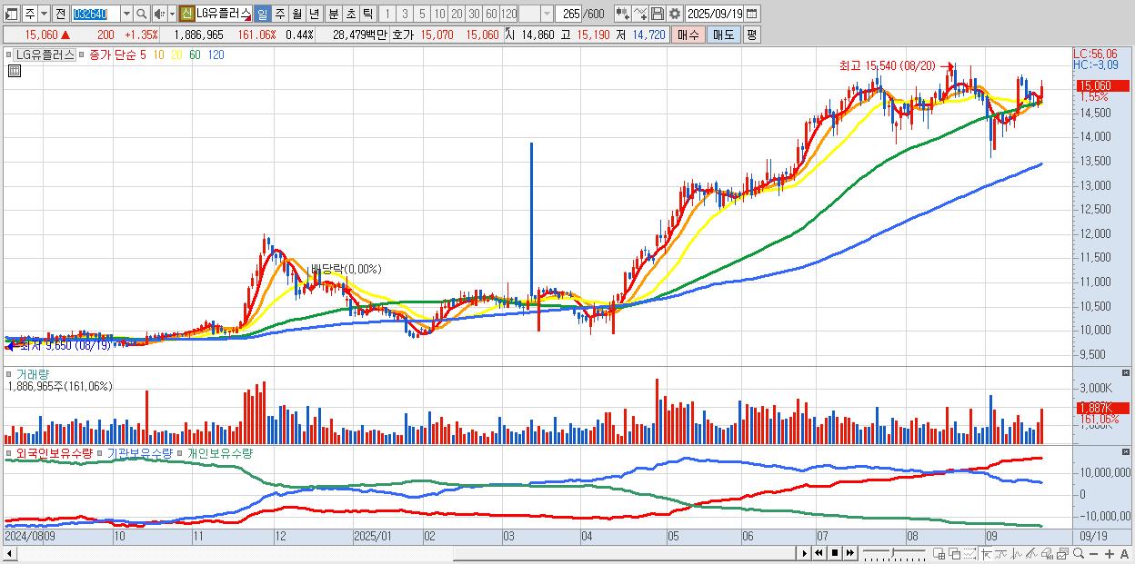 30.LG유플러스 15,180원 ▲ 2.15% (KOSPI, 032640)