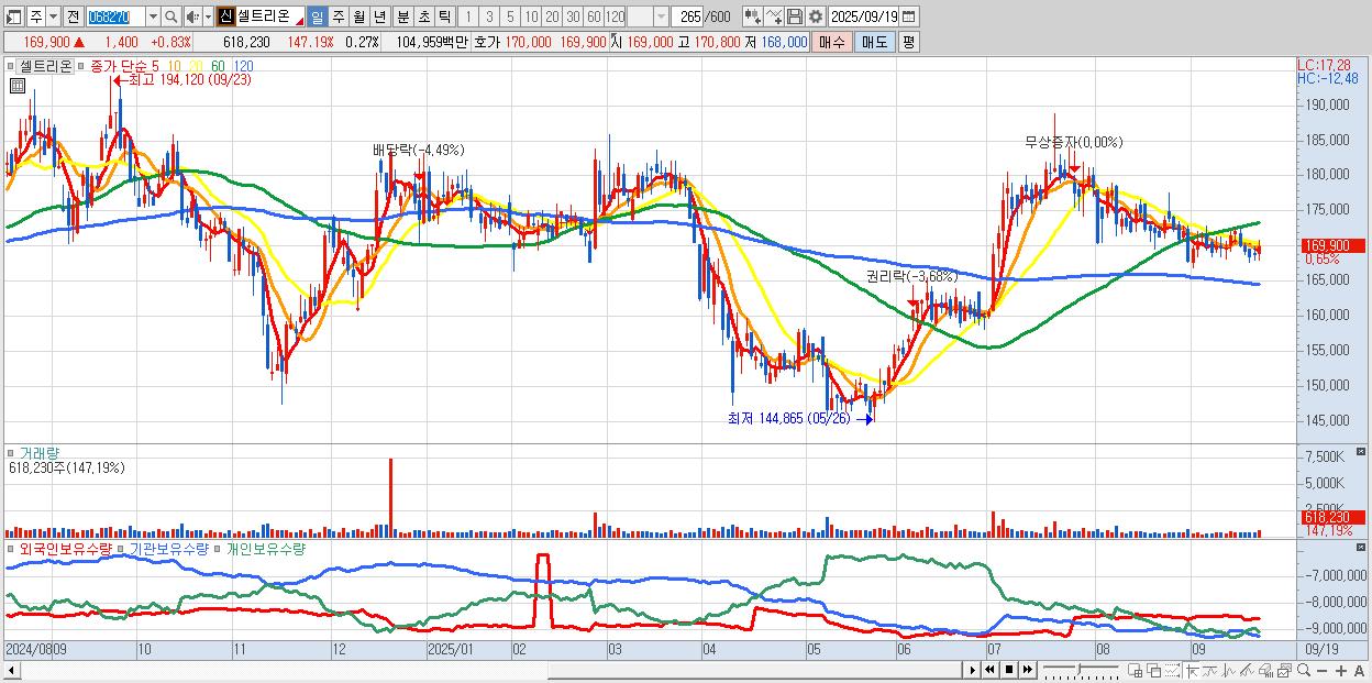 - 셀트리온 (170,800원 ▲ 1.36% , 시총: 394,444억, 외국인 순매수 거래금:246억)