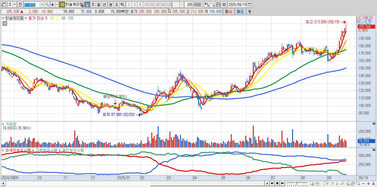 한솔케미칼 205,500원 ▲ 0.98% (KOSPI, 014680)