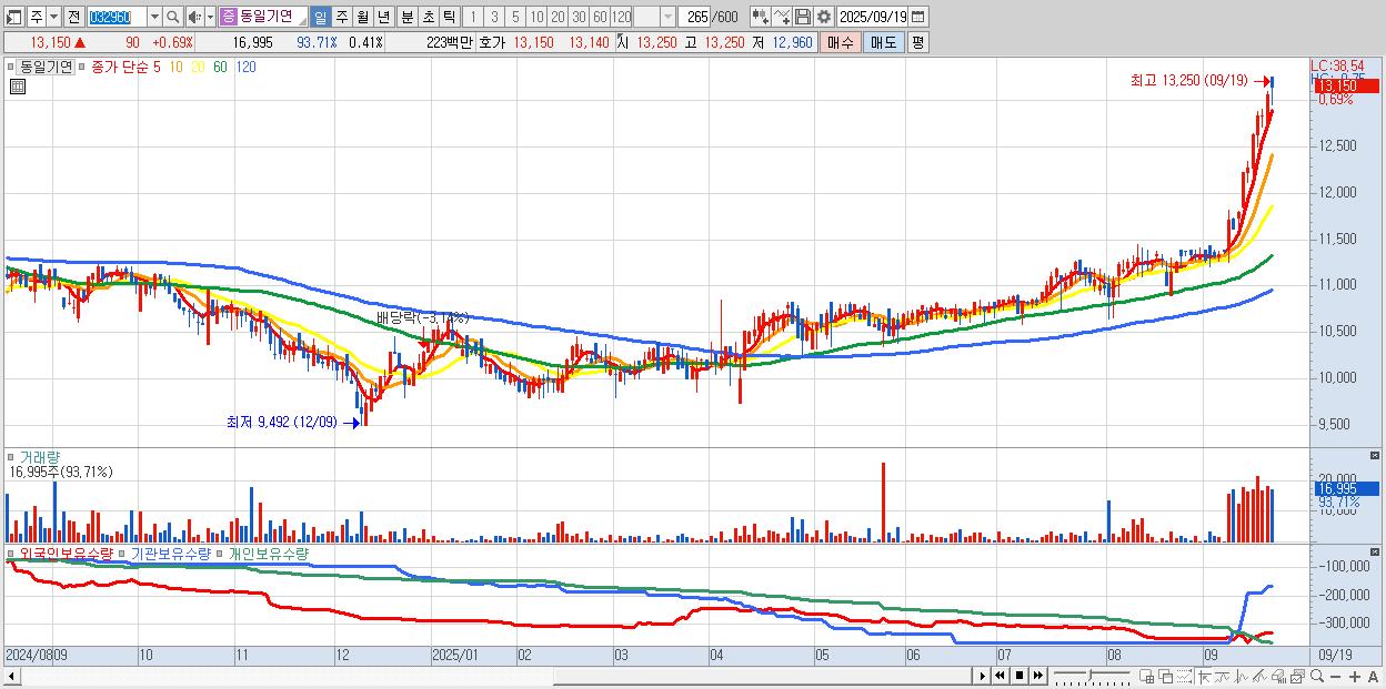 동일기연 13,150원 ▲ 0.69% (KOSDAQ, 032960)
