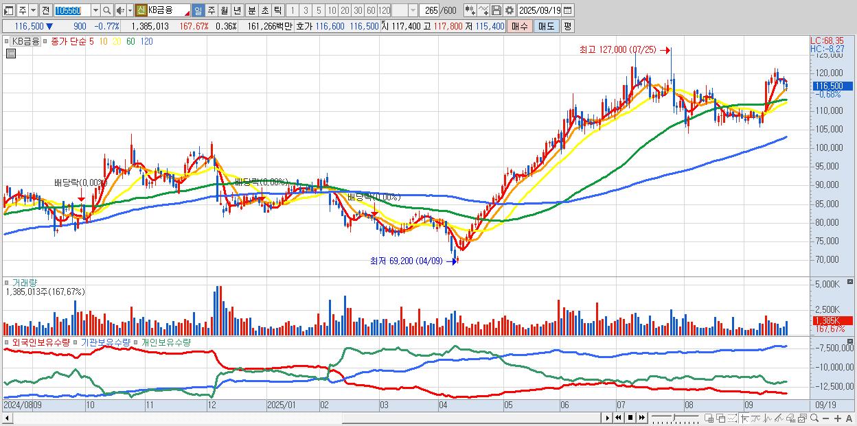 30.KB금융 116,500원 ▼ -0.77% (KOSPI, 105560)