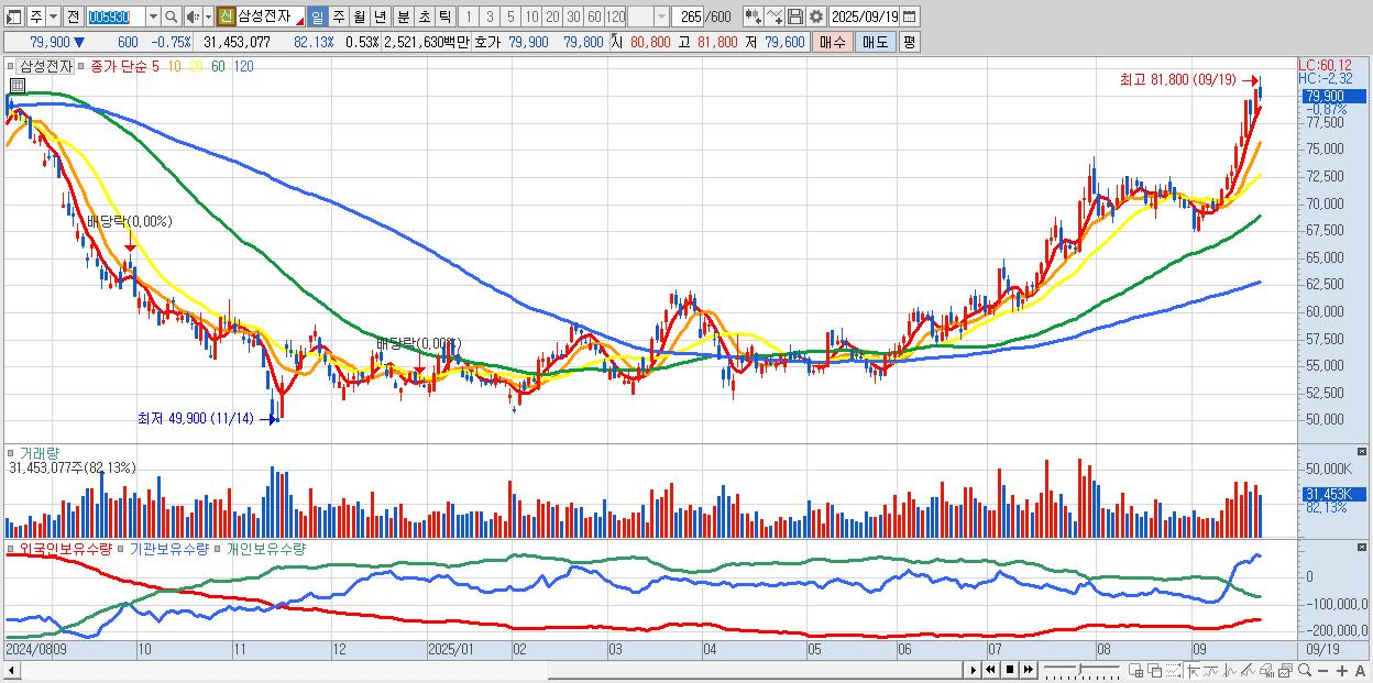 1.삼성전자 79,700원 ▼ -0.99% (KOSPI, 005930)