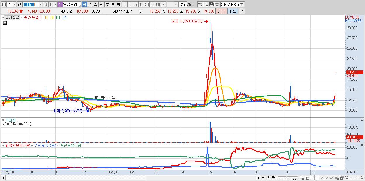 2.일정실업 19,260원 ▲ 29.96% (KOSPI, 008500)