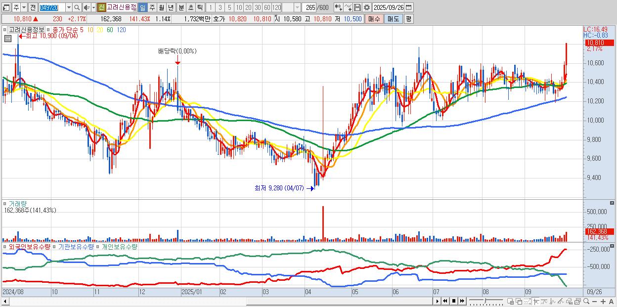 고려신용정보 10,810원 ▲ 2.17% (KOSDAQ, 049720)