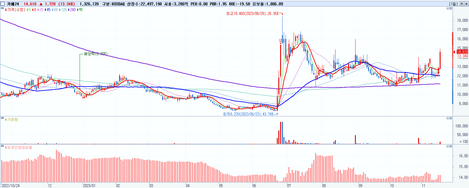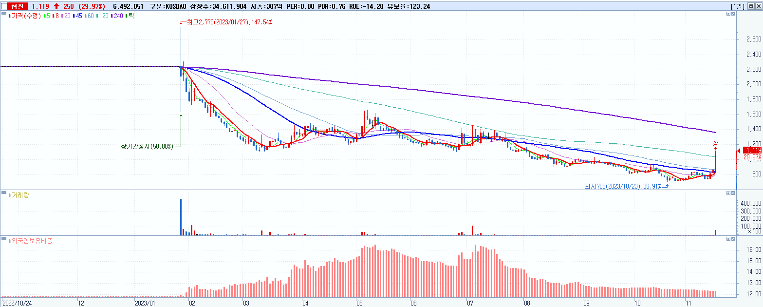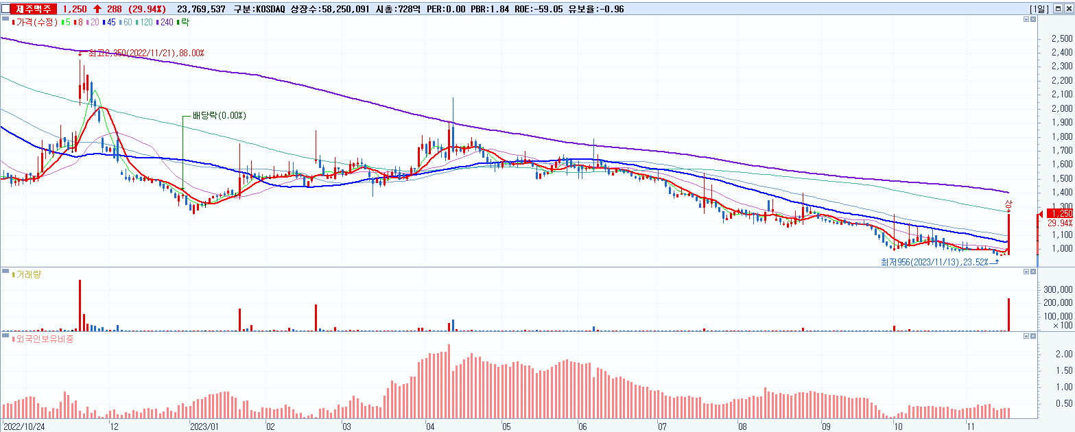 시총: 728억 거래량: 23,769,537 거래대금:283억