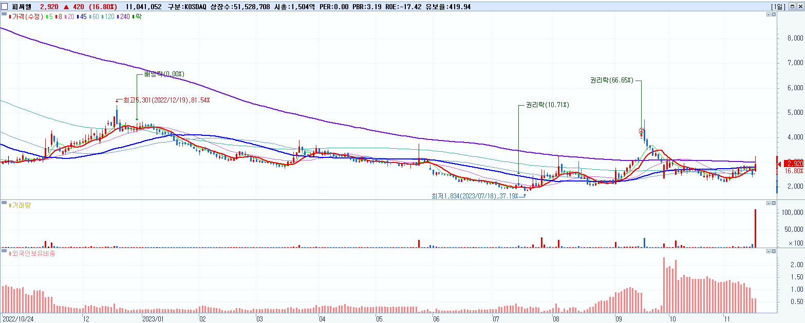시총: 1,154억 거래량: 3,932,512 거래대금:278억