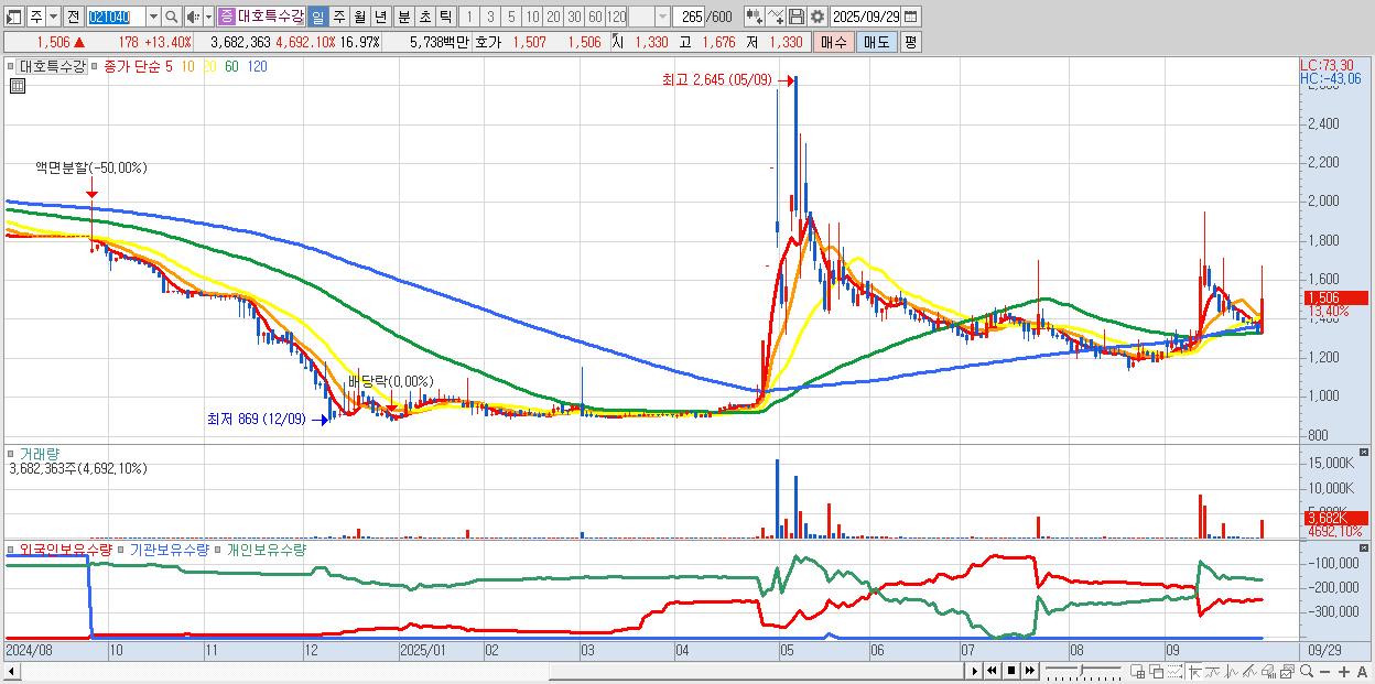 - 대호특수강 (1,506원 ▲ 13.4% , 시총: 327억, 거래량: 3,682,363, 거래대금:57억)