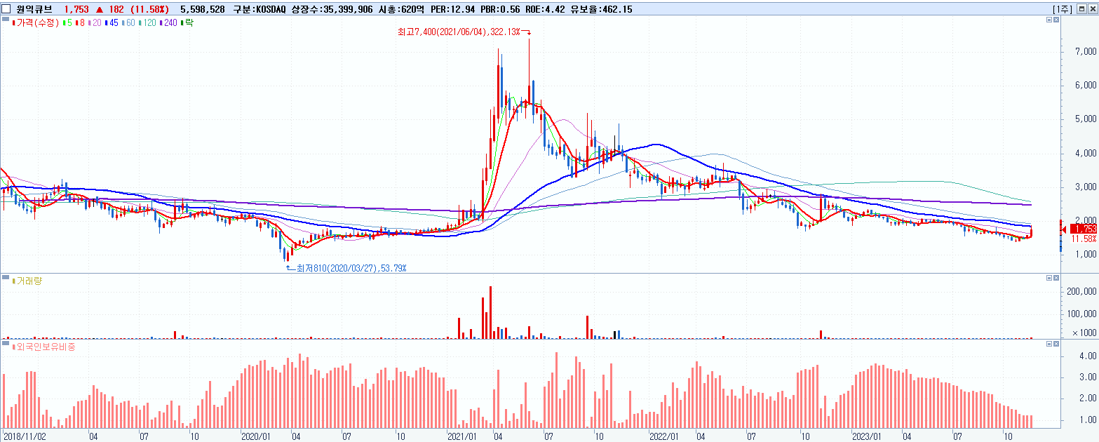 - 원익큐브 (1,753원 ▲ 11.58% , 시총: 621억, 거래량: 5,617,104, 거래대금:101억)