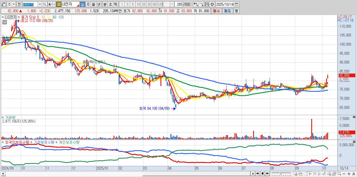 2.LG전자 83,000원 ▲ 2.47% (KOSPI, 066570)