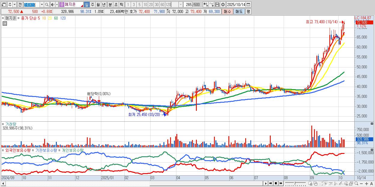 메지온 72,800원 ▲ 1.11% (KOSDAQ, 140410)