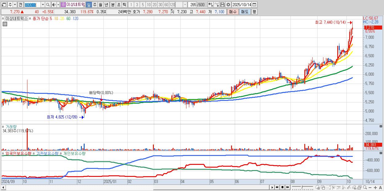 이상네트웍스 7,270원 ▲ 0.55% (KOSDAQ, 080010)
