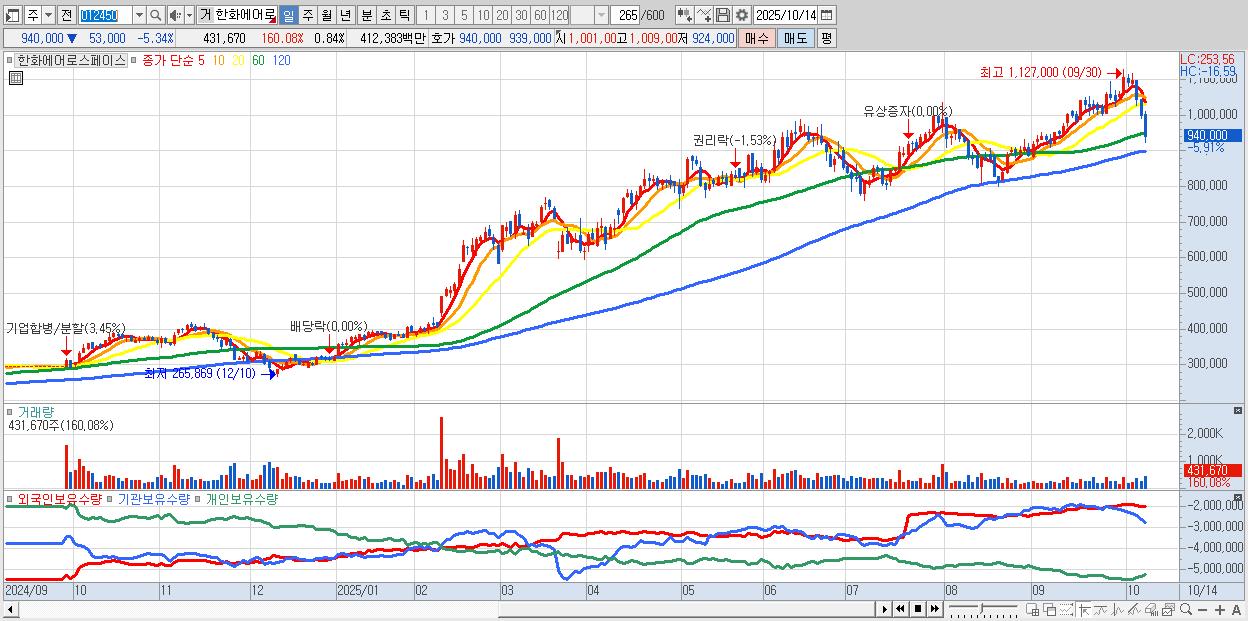 - 한화에어로스페이스 (933,000원 ▼ -6.04% , 시총: 481,087억, 거래량: 318,501, 거래대금:3,036억)