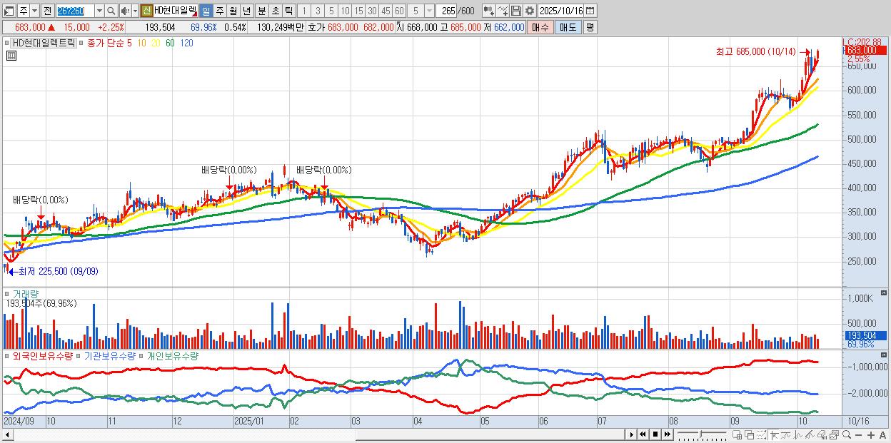 - HD현대일렉트릭 (685,000원 ▲ 2.54% , 시총: 246,923억, 외국인 순매수 거래금:110억)