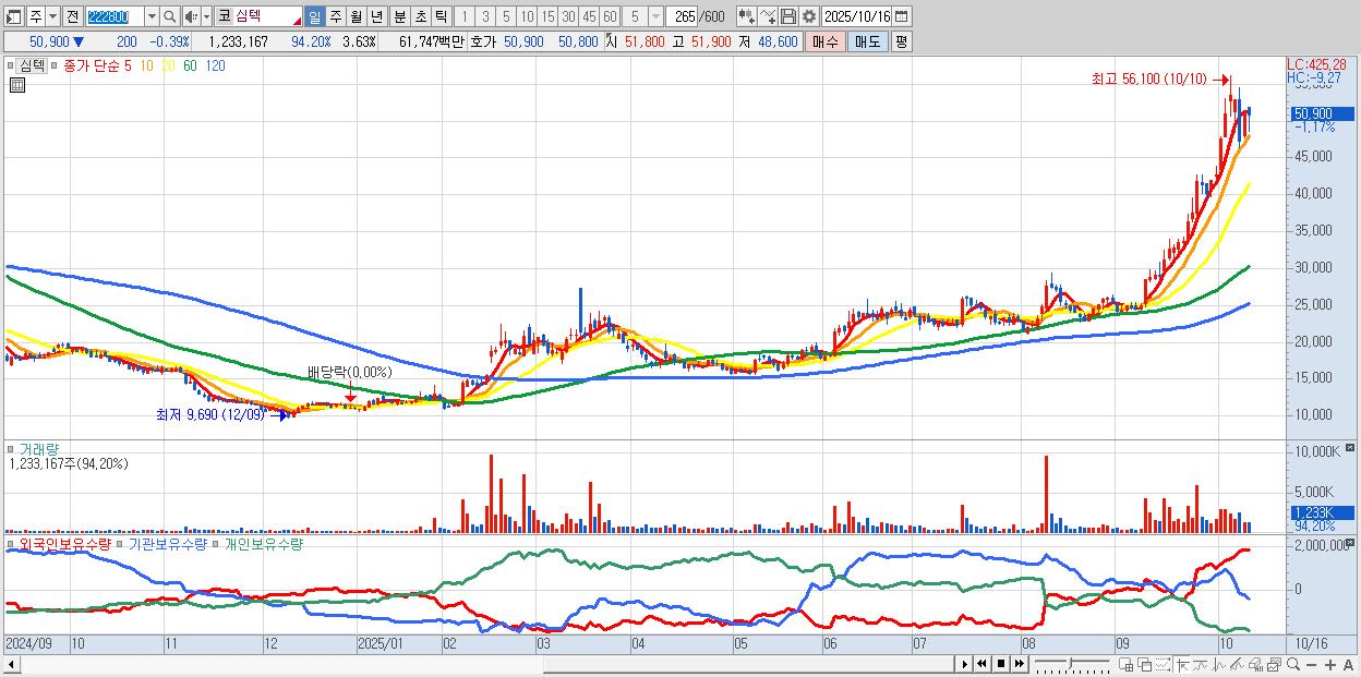 - 심텍 (50,700원 ▼ -0.78% , 시총: 17,225억, 외국인 순매수 거래금:95억)
