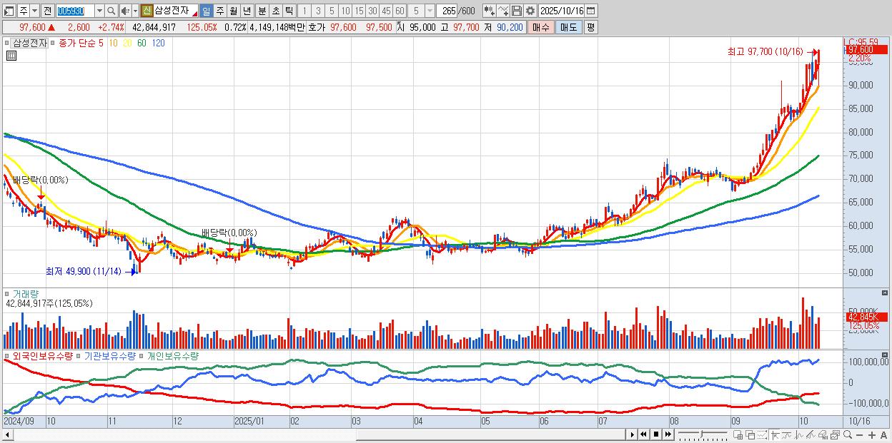 '10만전자' 바짝…진짜 사천피로? 관세타결 조짐에 '역대급 불장'