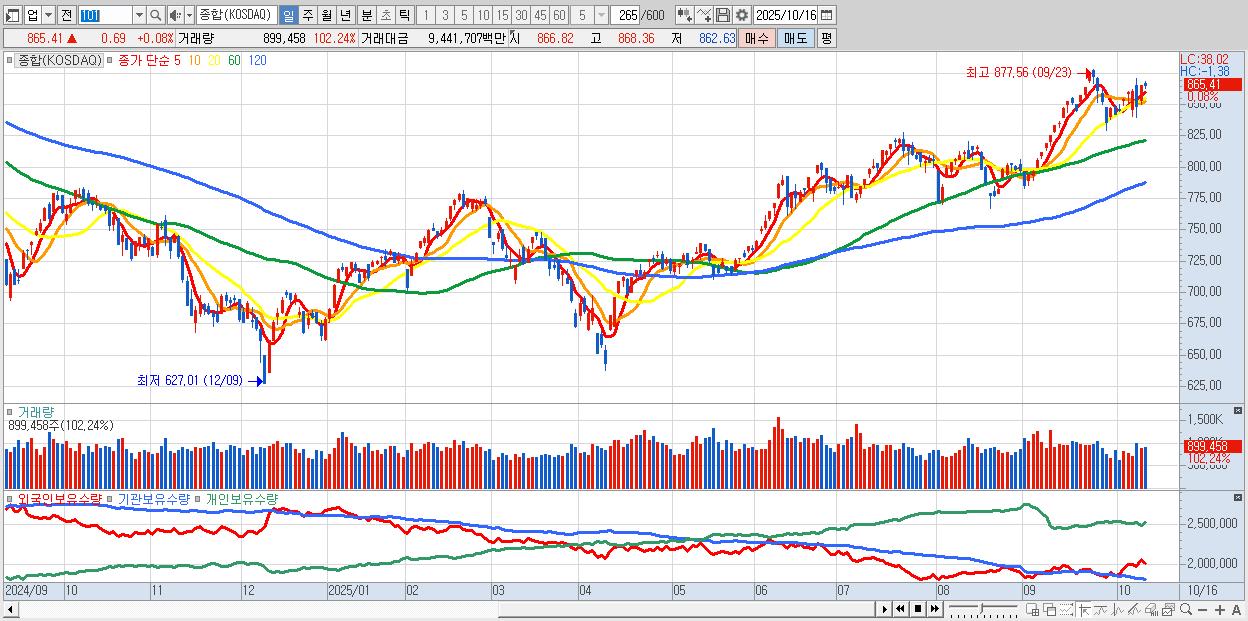 | 10/16 | 865.41 | ▲0.08% | 3,480억 | -827억 | -2,361억 | -292억 |