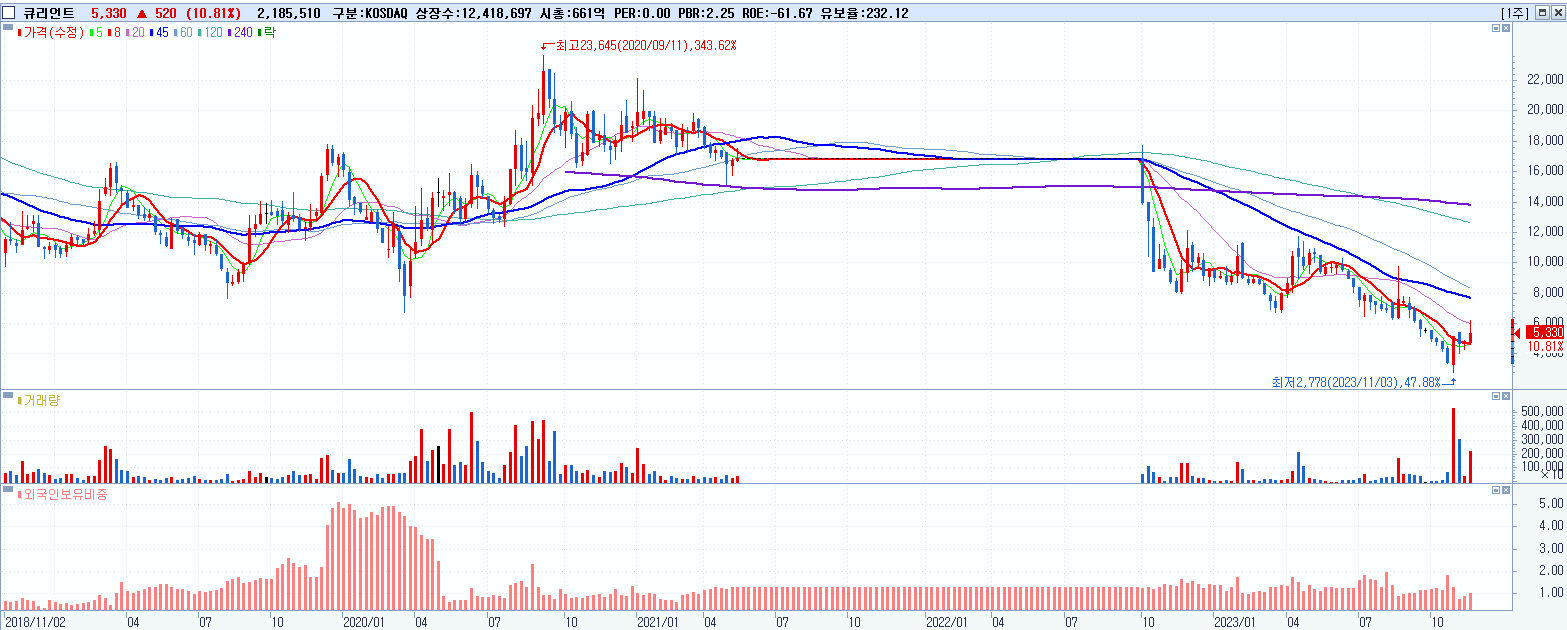 - 큐리언트 (5,330원 ▲ 10.81% , 시총: 662억, 거래량: 2,186,071, 거래대금:122억)