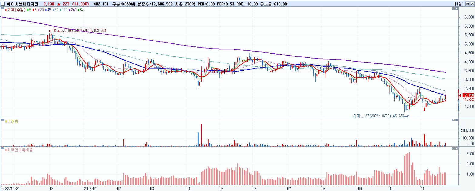 시총: 5,349억 거래량: 48,380,961 거래대금:1,013억
