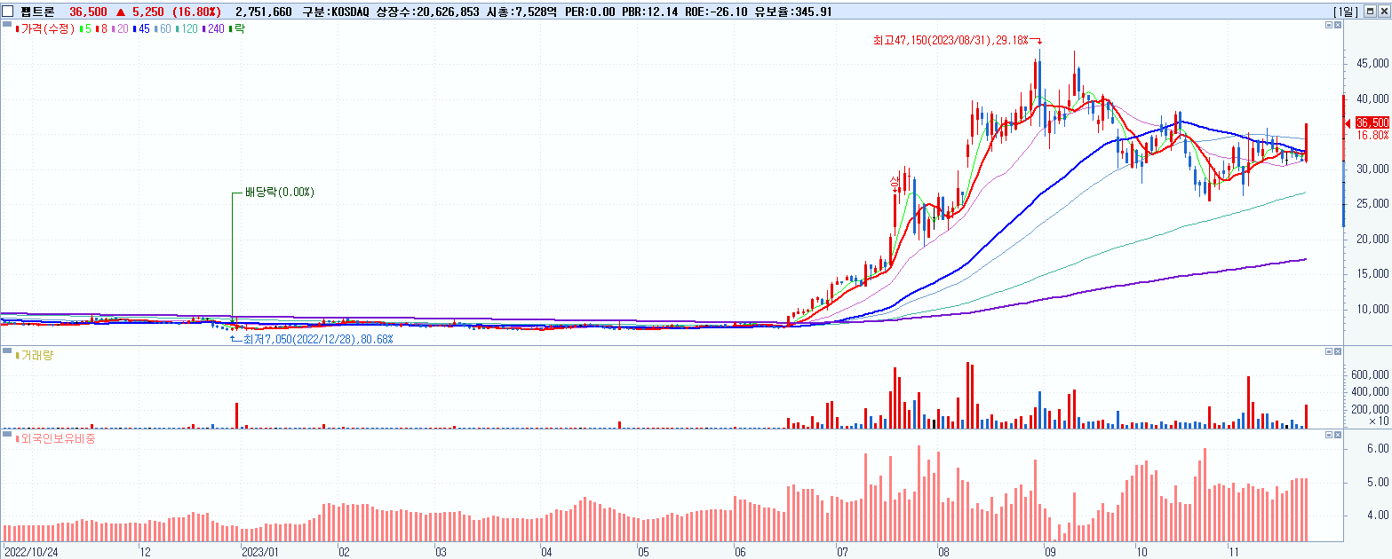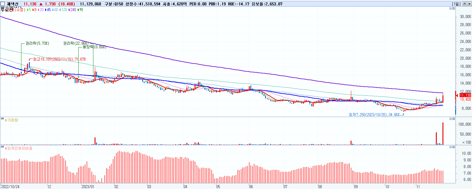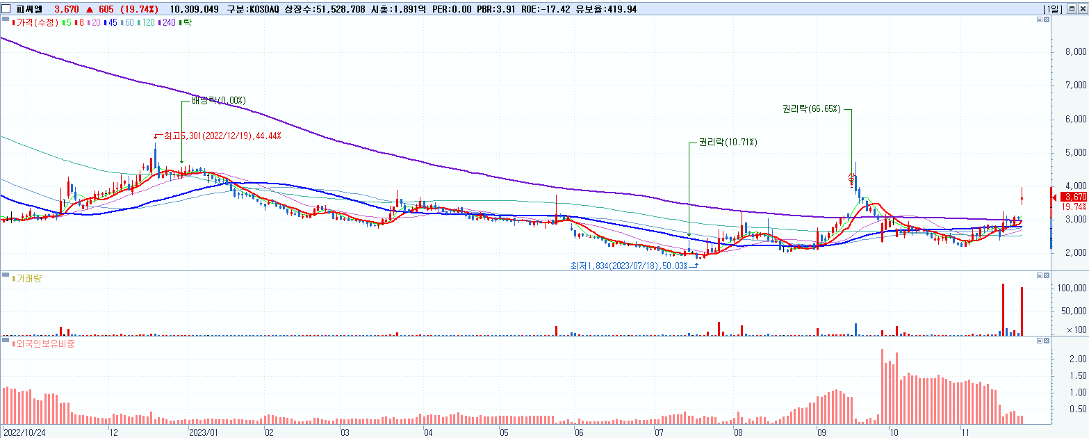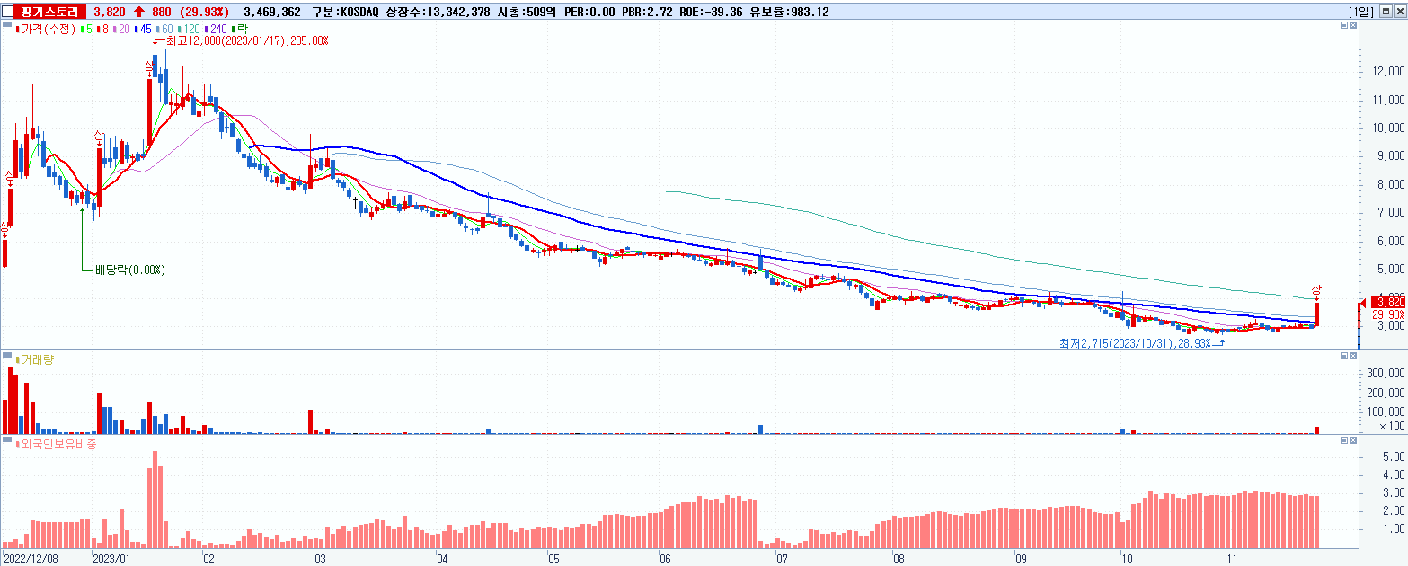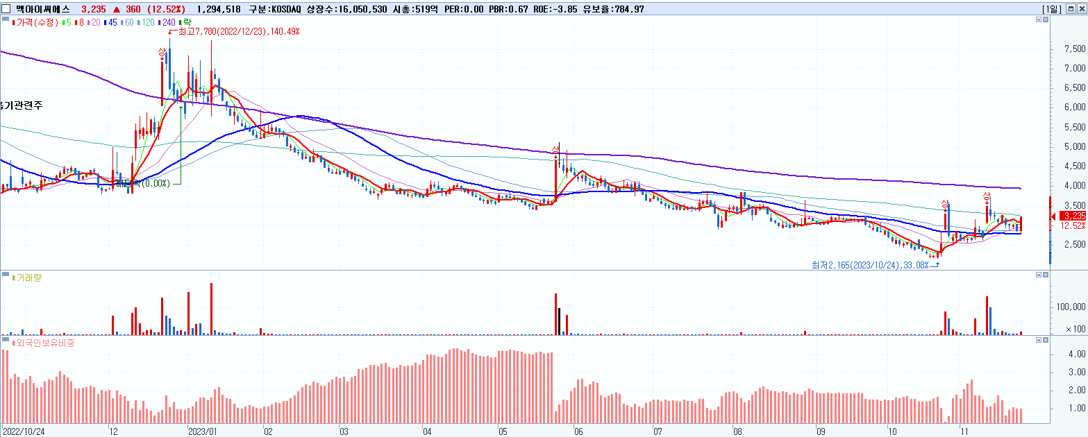 시총: 510억 거래량: 3,469,586 거래대금:123억