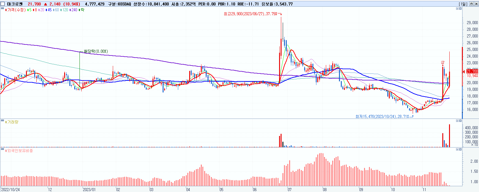시총: 2,353억 거래량: 4,796,019 거래대금:1,085억