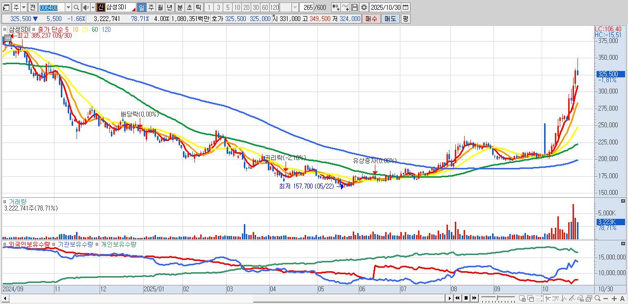 2.삼성SDI 325,500원 ▼ -1.66% (KOSPI, 006400)