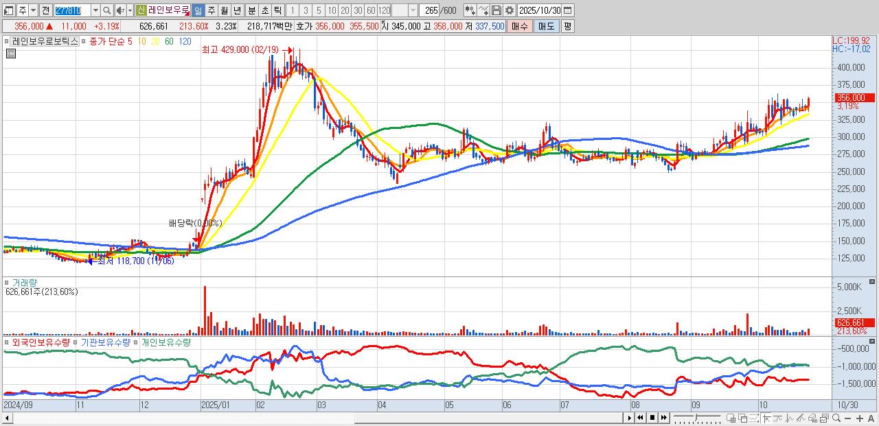 - 레인보우로보틱스 (352,000원 ▲ 2.03% , 시총: 68,288억, 외국인 순매수 거래금:159억)