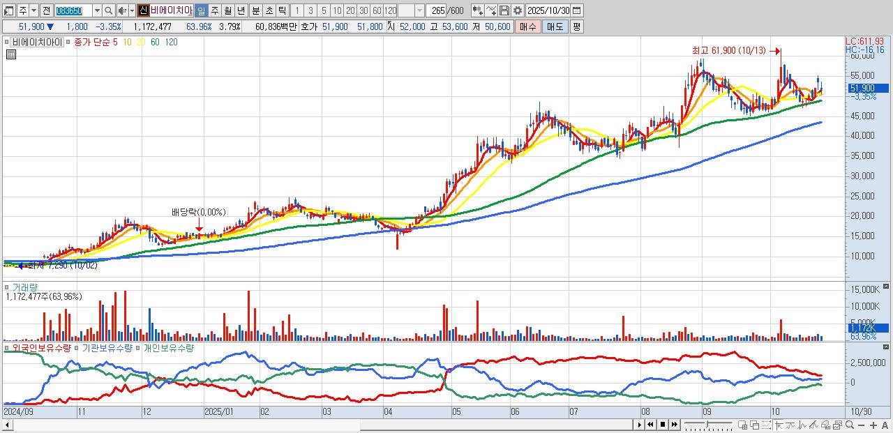 - 비에이치아이 (51,900원 ▼ -3.35% , 시총: 16,060억, 외국인 순매수 거래금:111억)