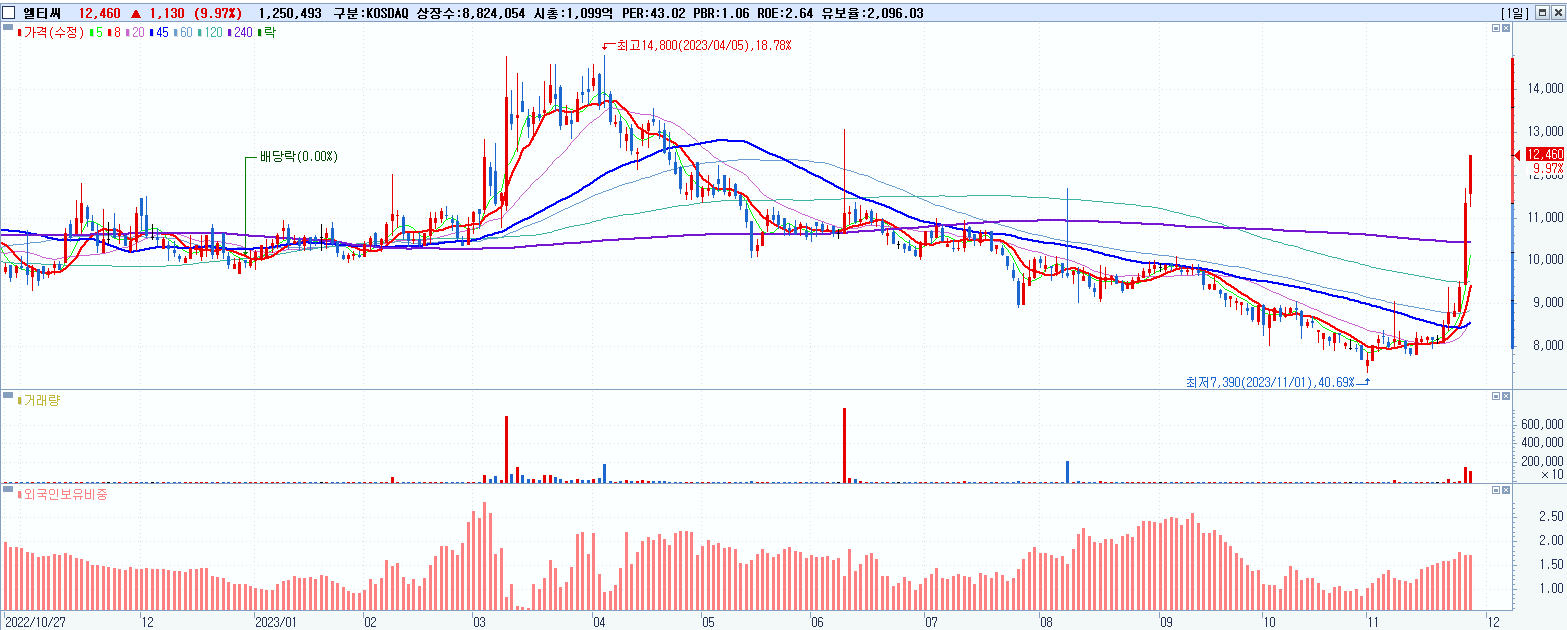 시총: 610억 거래량: 12,480,545 거래대금:98억