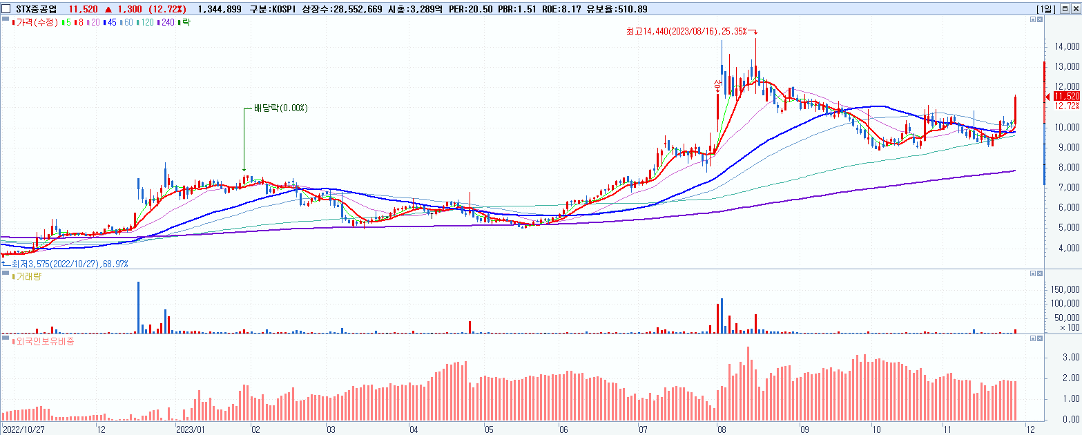 - STX중공업 (11,520원 ▲ 12.72% , 시총: 3,289억, 거래량: 1,346,558, 거래대금:151억)