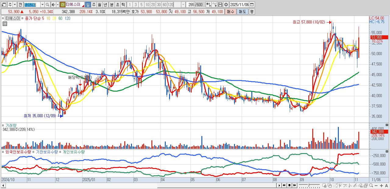 30.티에스이 54,200원 ▲ 10.95% (KOSDAQ, 131290)
