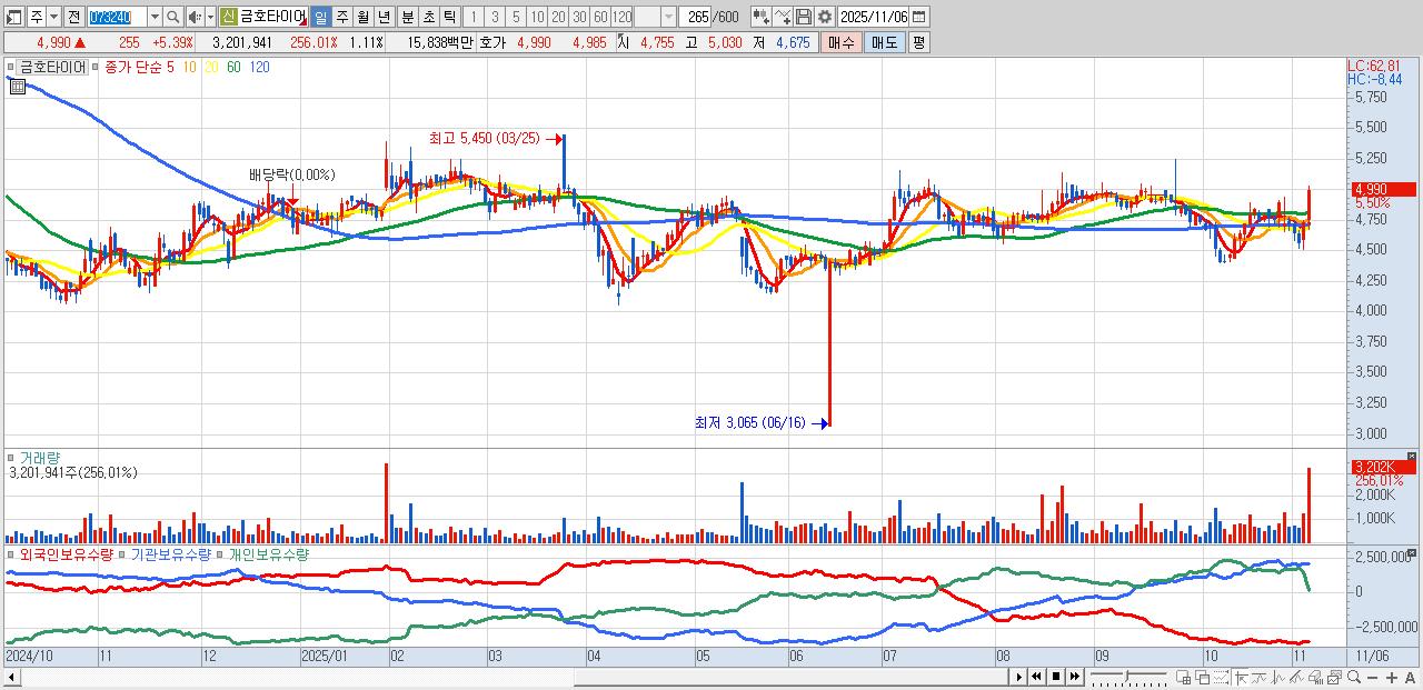 30.금호타이어 4,975원 ▲ 5.07% (KOSPI, 073240)