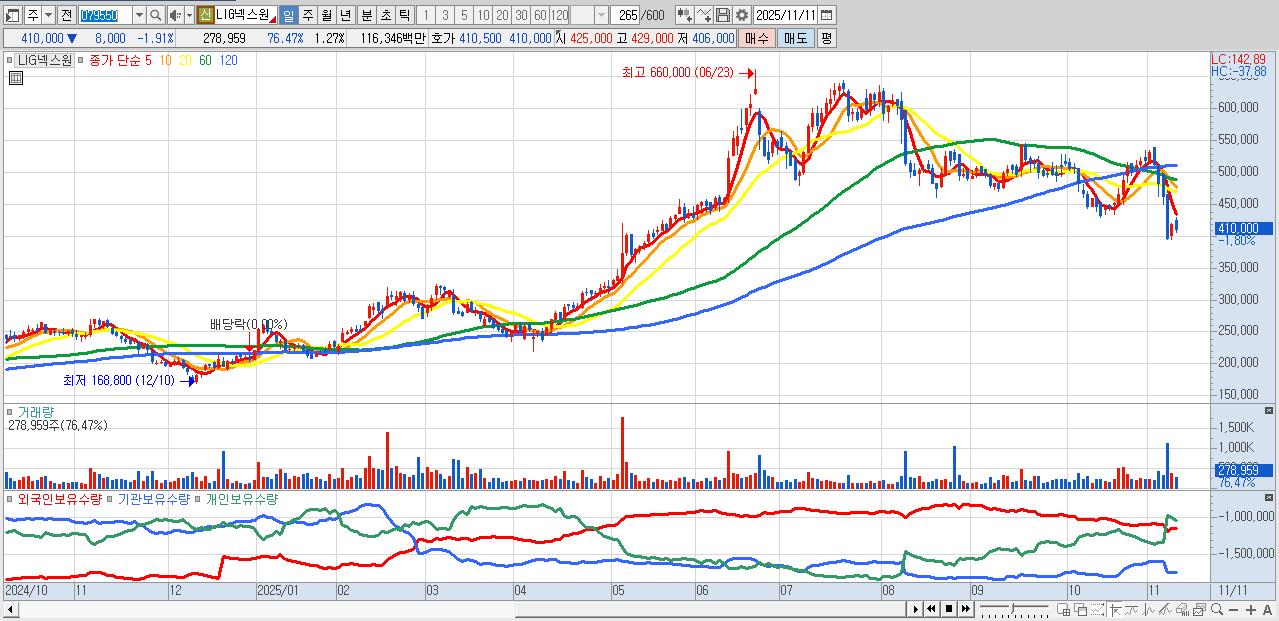 | 2025-11-10 | 212억 | -4억 | 119억 | 30억 | -357억 |