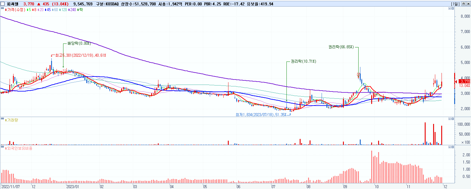 - 피씨엘 (3,770원 ▲ 13.04% , 시총: 1,943억, 거래량: 9,548,021, 거래대금:375억)