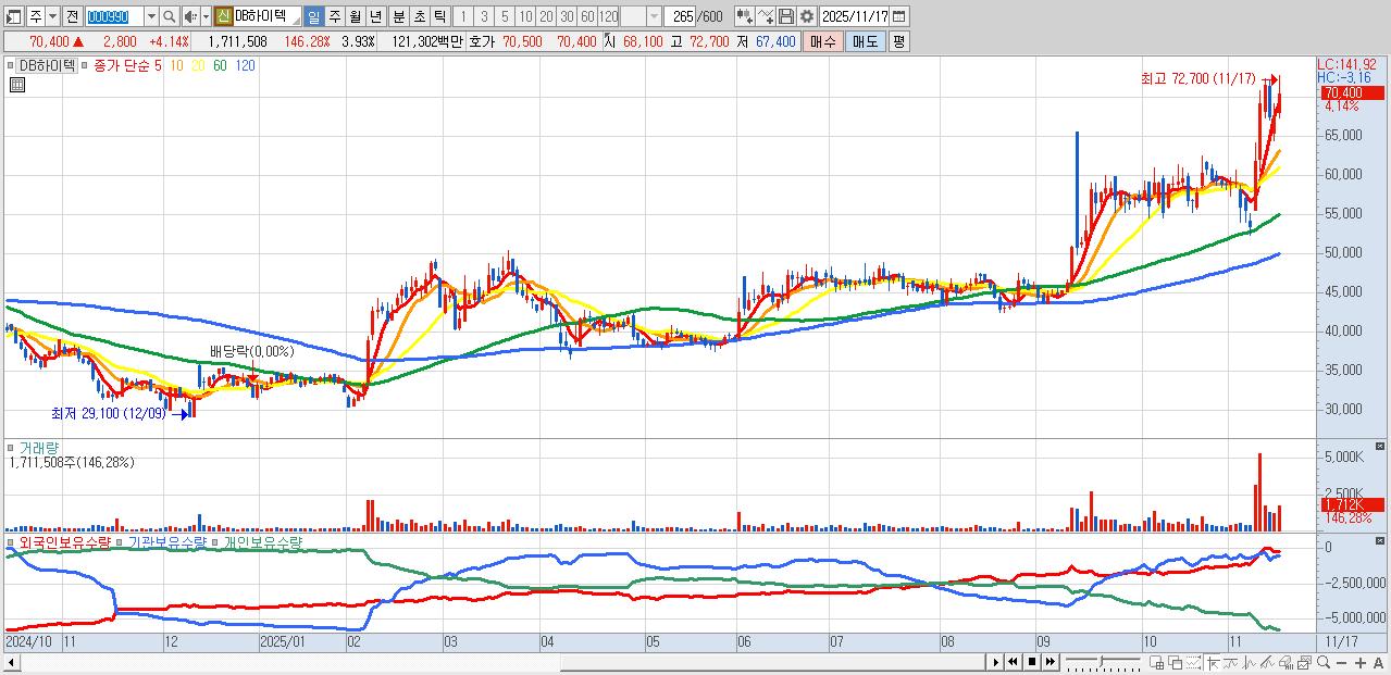 30.DB하이텍 70,400원 ▲ 4.14% (KOSPI, 000990)