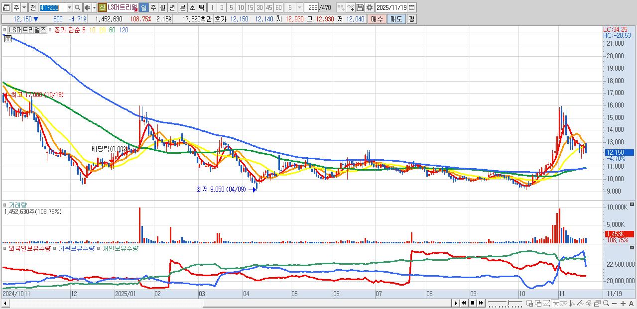 30.LS머트리얼즈 12,110원 ▼ -5.02% (KOSDAQ, 417200)
