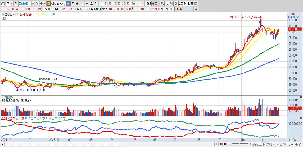 2.삼성전자 102,800원 ▲ 3.52% (KOSPI, 005930)