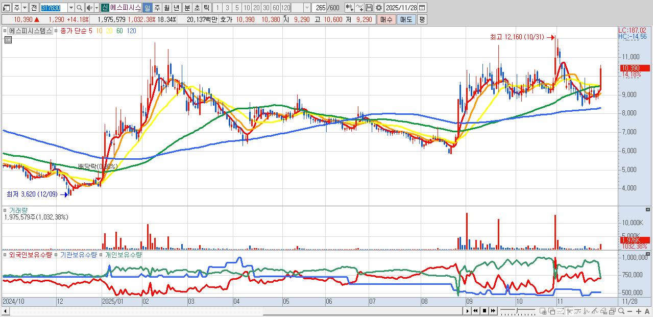 30.에스피시스템스 10,390원 ▲ 14.18% (KOSDAQ, 317830)
