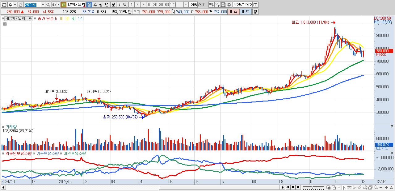 - HD현대일렉트릭 (781,000원 ▲ 4.69% , 시총: 281,528억, 외국인 순매수 거래금:339억)