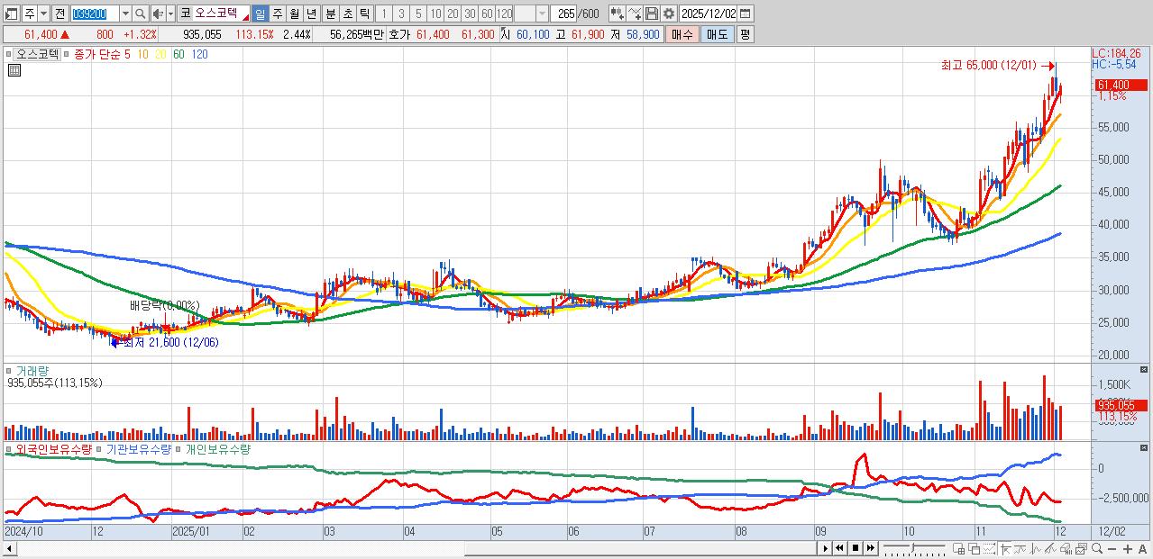 - 오스코텍 (61,000원 ▲ 0.66% , 시총: 23,337억, 외국인 순매수 거래금:91억)
