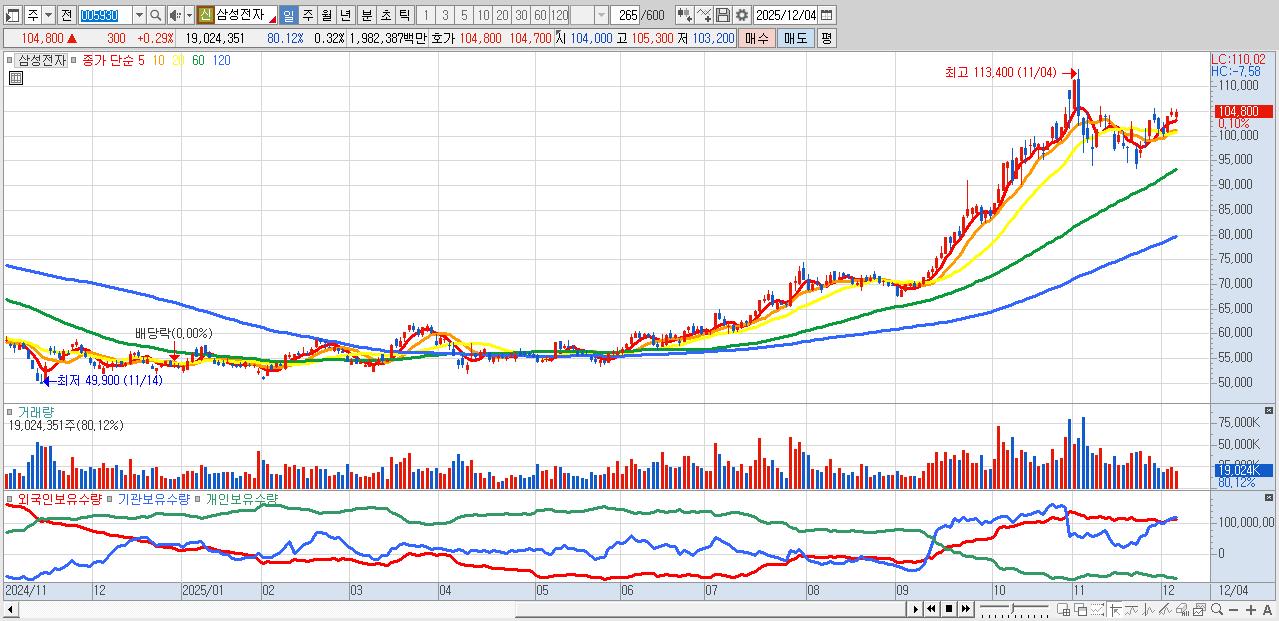 2.삼성전자 105,100원 ▲ 0.57% (KOSPI, 005930)