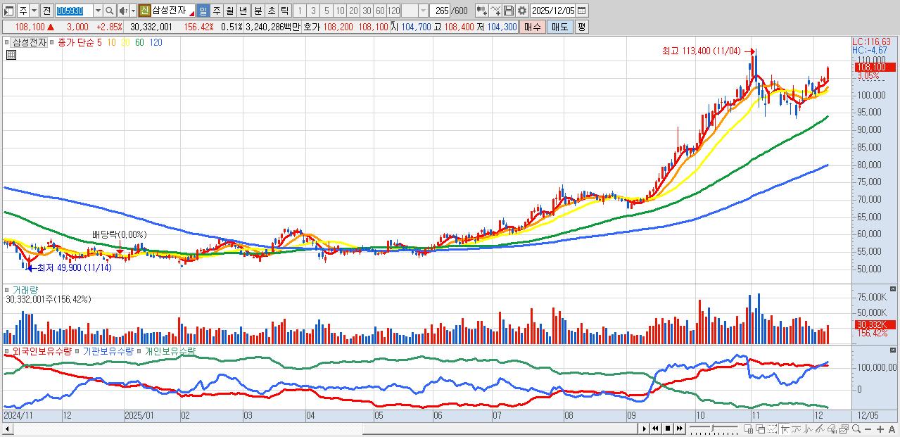 1.삼성전자 108,400원 ▲ 3.14% (KOSPI, 005930)
