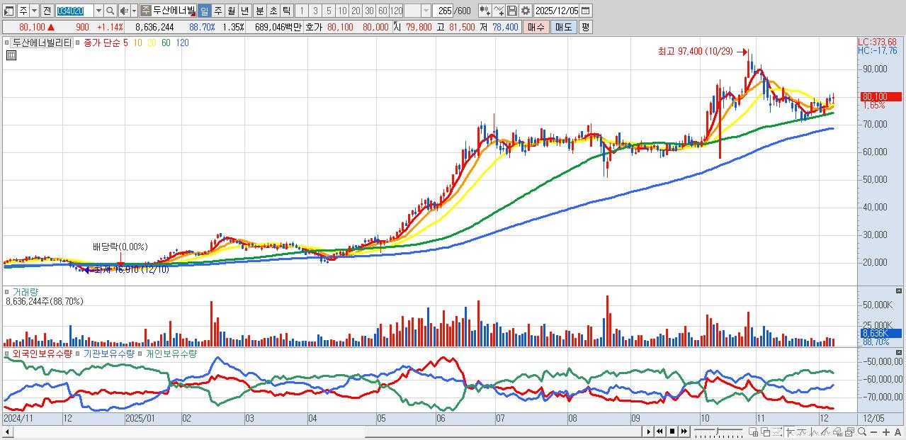- 두산에너빌리티 (80,400원 ▲ 1.52% , 시총: 515,011억, 외국인 순매수 거래금:295억)