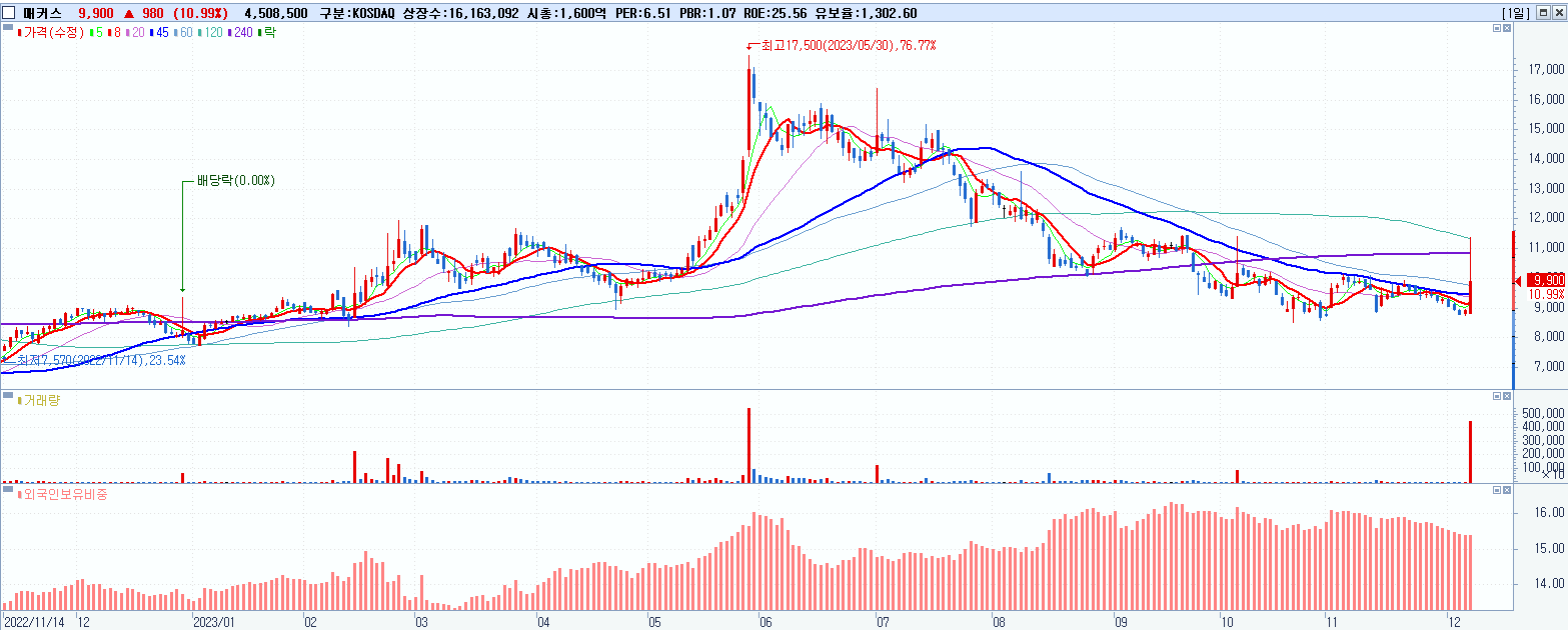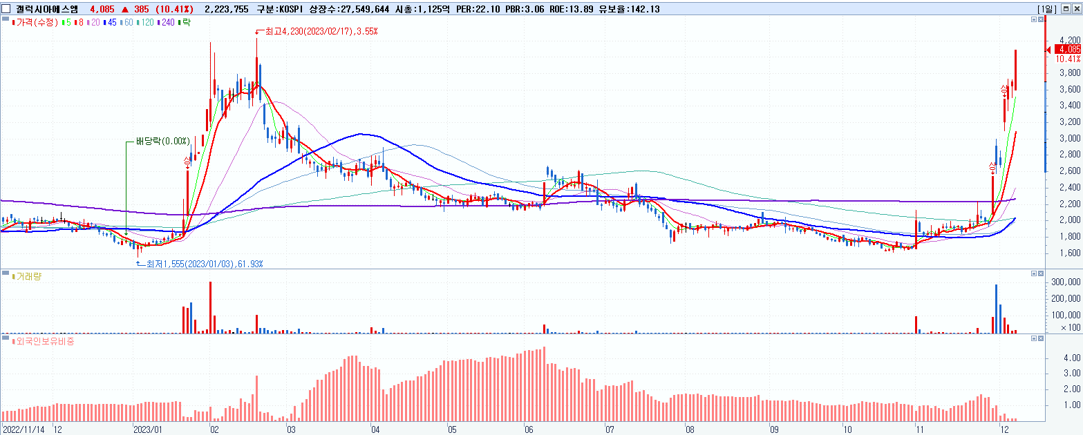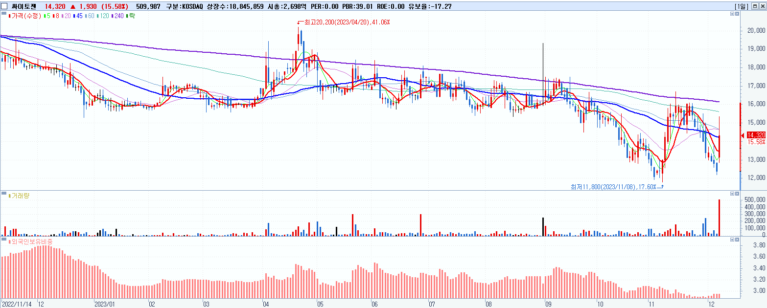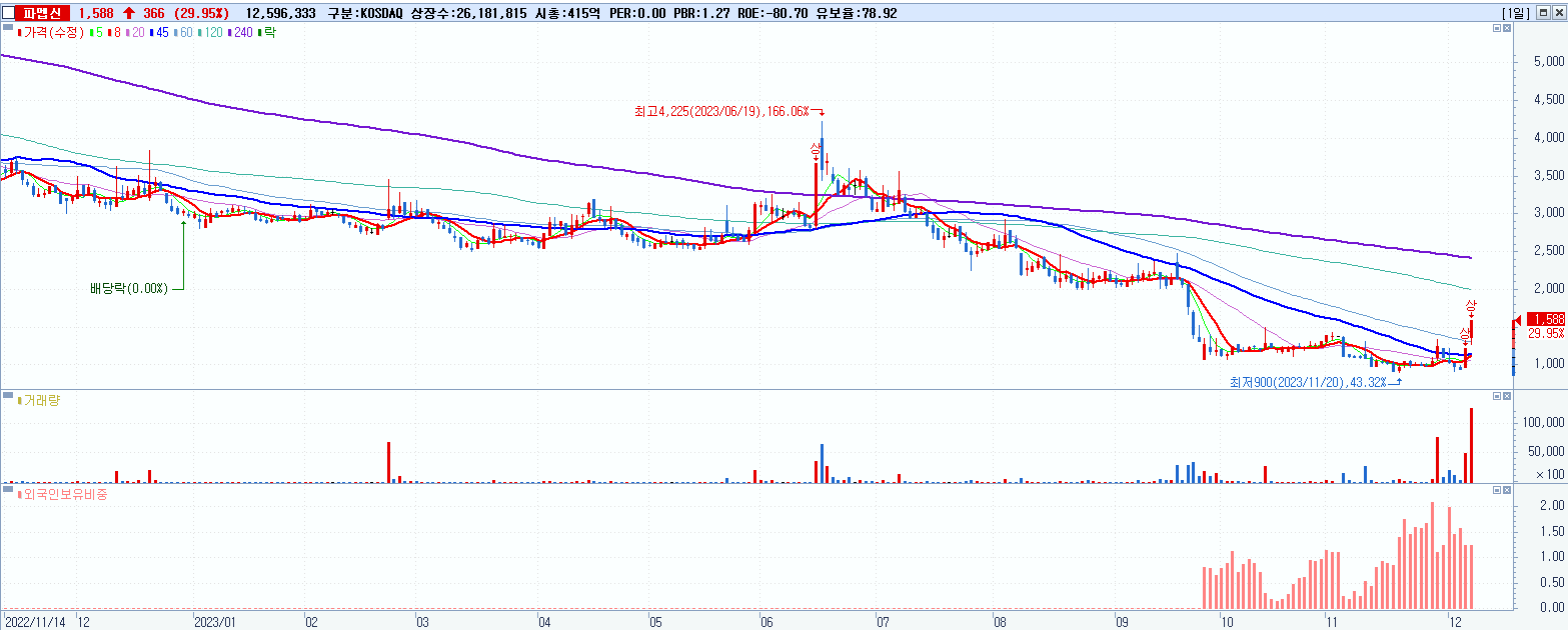 시총: 416억 거래량: 12,596,333 거래대금:187억