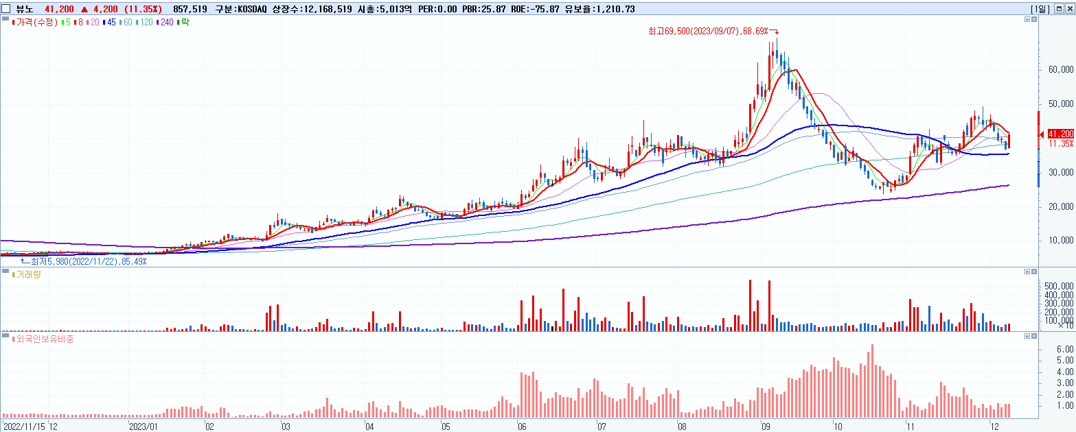 - 뷰노 (41,200원 ▲ 11.35% , 시총: 5,013억, 거래량: 860,350, 거래대금:340억)