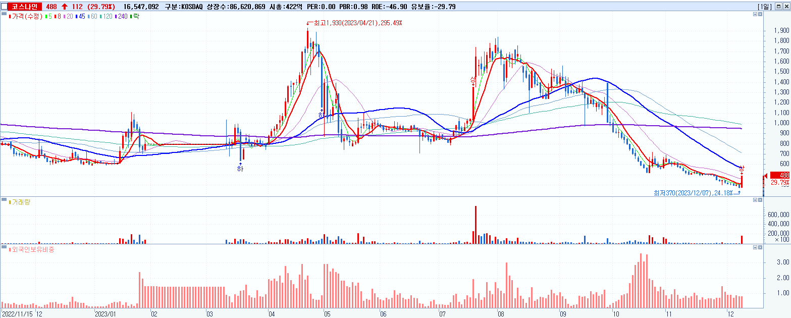 시총: 333억 거래량: 1,636,763 거래대금:75억