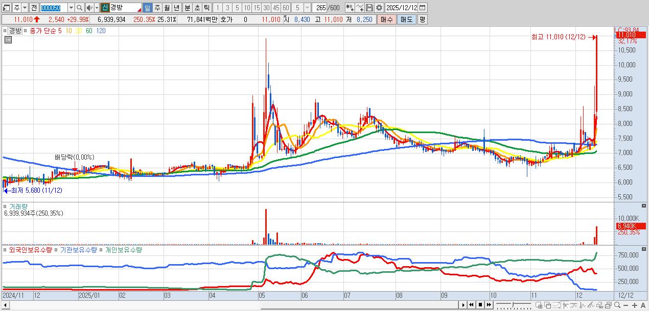 경방 11,010원 ▲ 29.99% (KOSPI, 000050)